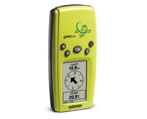 Портативный GPS навигатор Garmin Geko 201 имеет специальный разъем, через который осуществляется подключение к устройству внешнего источника питания, а так же кабеля для синхронизации с компьютером. Встроенная память прибора позволяет хранить до 20 маршрутов и 10 траекторий. Данный навигатор ориентирован в основном на рыболовов и охотников, но может использоваться как туристами, так и просто любителями активного отдыха на природе.