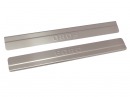 Накладки на порог двери — надежная защита штатных порогов от повреждений и царапин при посадке/высадке из авто. Многие автомобили комплектуются штатными накладками на пороги, однако чаще всего они изготовлены из пластика, поэтому быстро портятся и теряют свой вид. Поэтому лучшей альтернативой станут декоративные накладки на пороги из нержавейки.